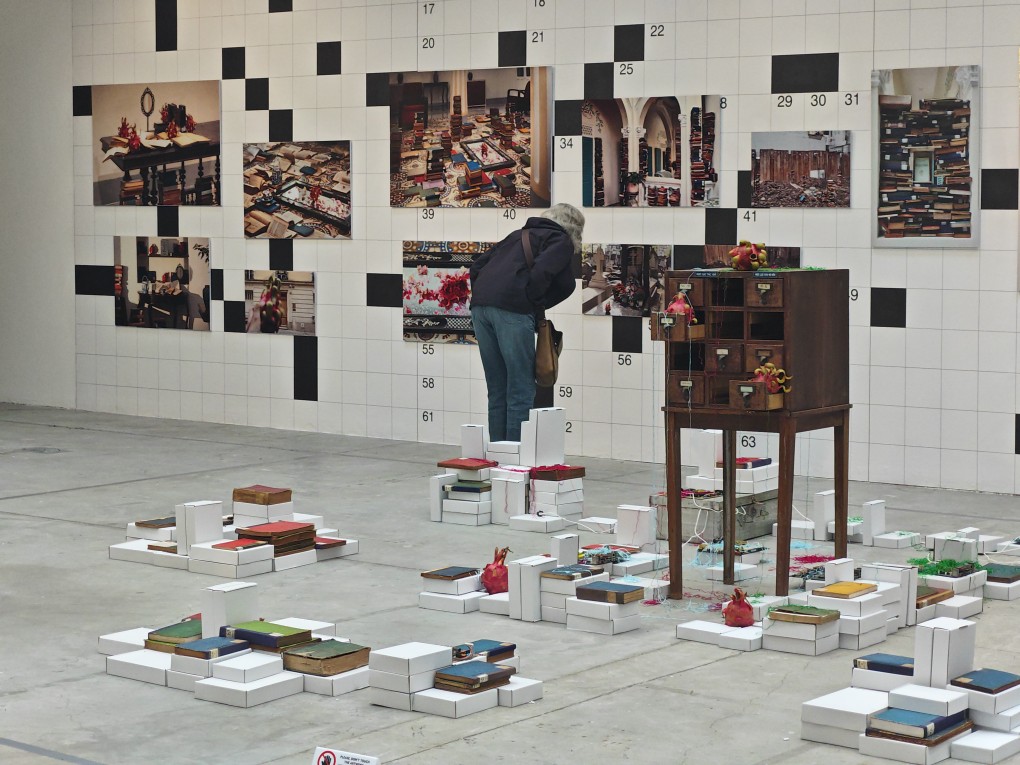 “Quang Lam’s style is unquestioningly about play, but also about accountability. He wants the viewer to know how we experience what we experience, through what we enact and the thoughts we think, the ways in which we move. His contribution to the exhibition is a series of installations demonstratng the state of the world.