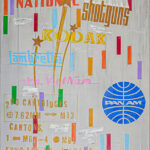 The painting shows different brands—American, European, and Asian—including the first international Vietnamese brand, Air Vietnam. Some graffiti words are those of hand-written by the GIs on their helmets, while other words are also taken from Vietnamese pop songs from the label ‘Shotgun,’ which was the best known at that time.