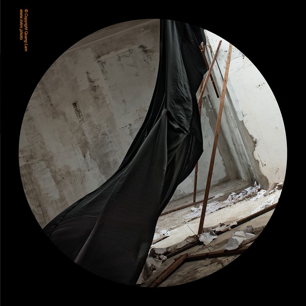 In an abandoned building opened to the wind and the rain, a large size of white paper has been washed through days by the rain to recover the dusty ground as a snow coat.