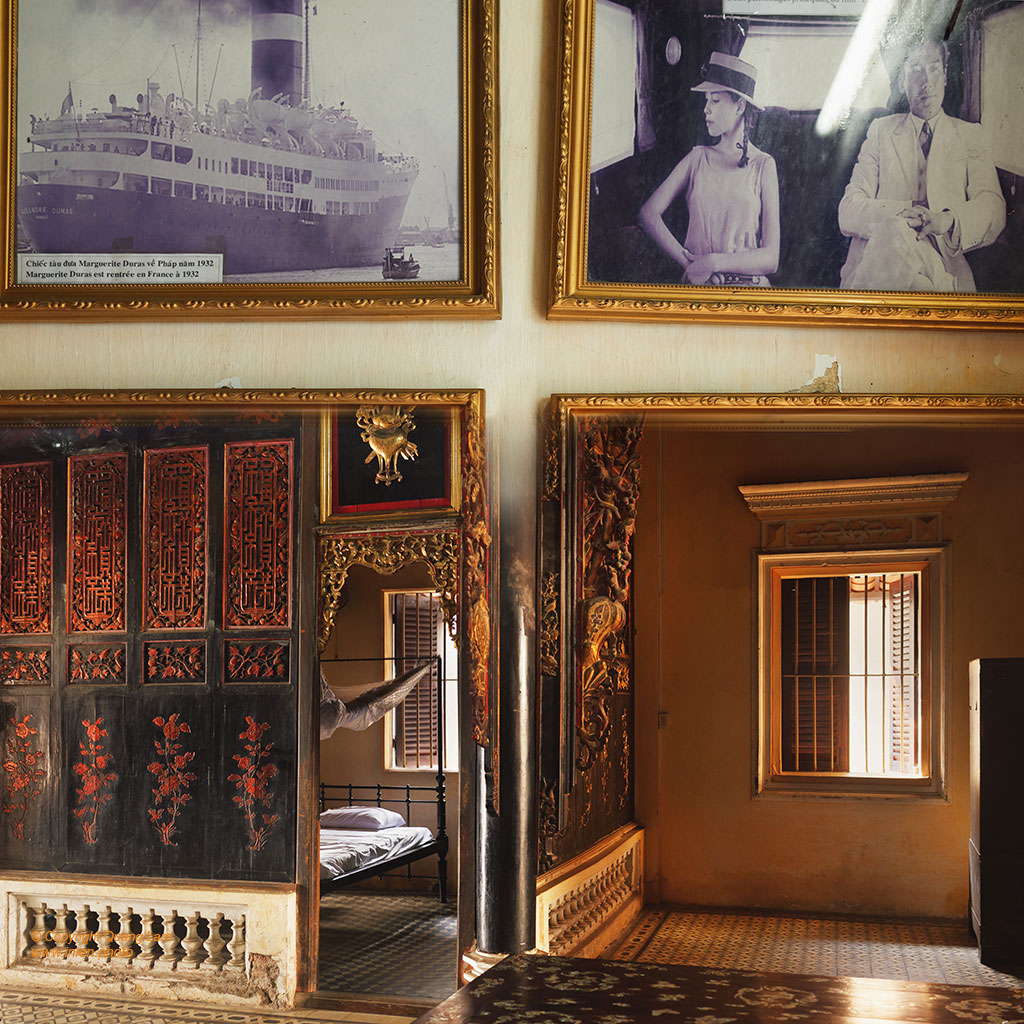 This photograph is a composite image featuring various elements found in the Huỳnh Thủy Ancient House, constructed in 1895 by Huỳnh Thủy Lê’s father, a merchant immigrant from Fujian, China. Within this splendid Indochinese-style residence blending French, Vietnamese, and Chinese architectural influences, film stills are displayed, creating the illusion that the two actors truly inhabited the space, blurring the lines between fiction and historical reality.
